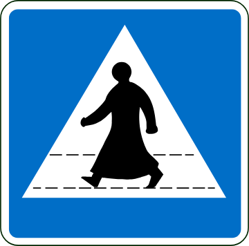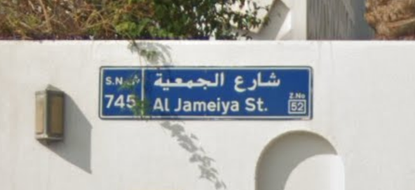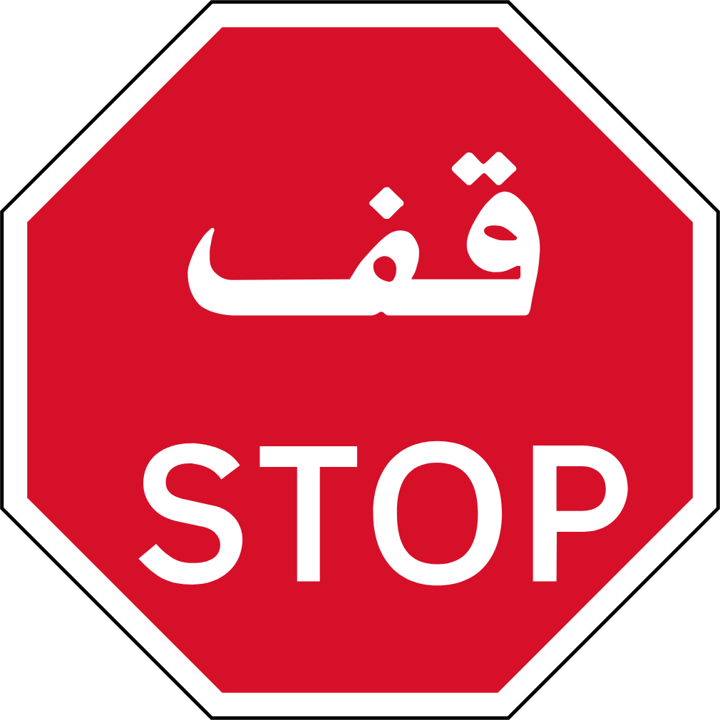 ・横断歩道がトーブという中東の民族衣装を着たピクトグラムになっている。他アラビア語で書かれた標識あり