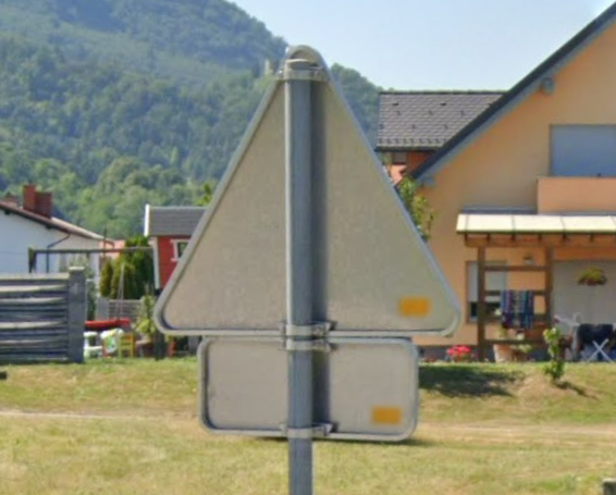 ・標識の裏に黄色いシールが貼られている事が多い。オーストリアで見たことがないので黄色いシールがあればスロベニア確定でいい気がする。