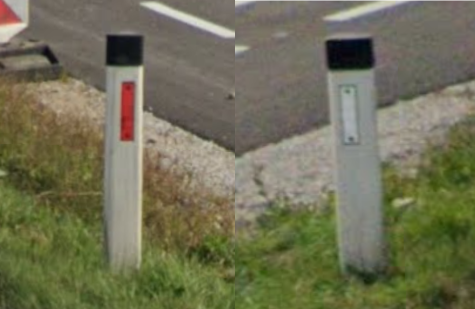 ・上に黒のチップがあって白いポールに赤い反射(オーストリアと酷似)