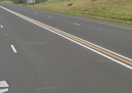 道路中央線が白の二重線の中に黄色の実線がある道路は、Durban辺りのN2高速道路のみ?